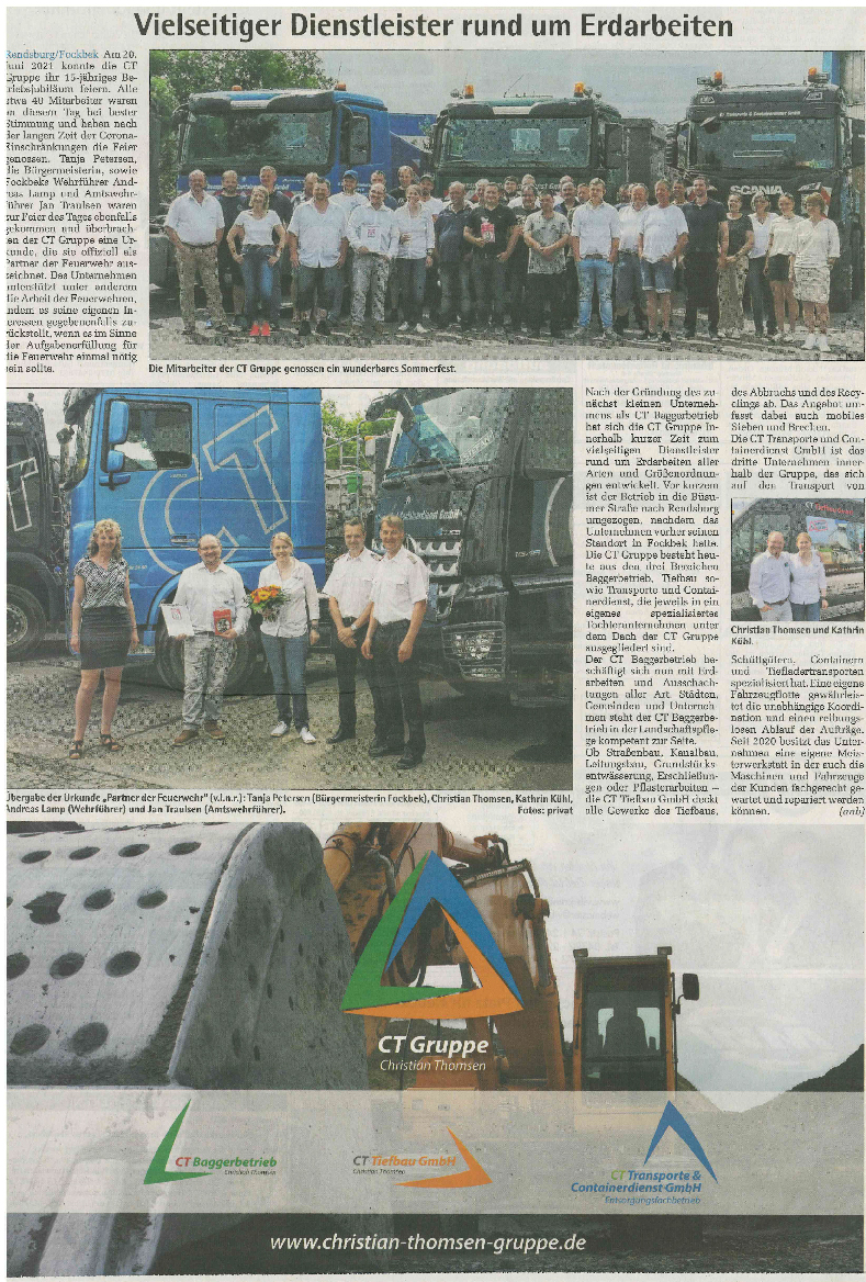 Weit über Rendsburg hinaus stehen wir der Region nun seit vielen Jahren mit unserer CT Group bereit. Und sind gewillt weiterhin unser Bestes zu geben!